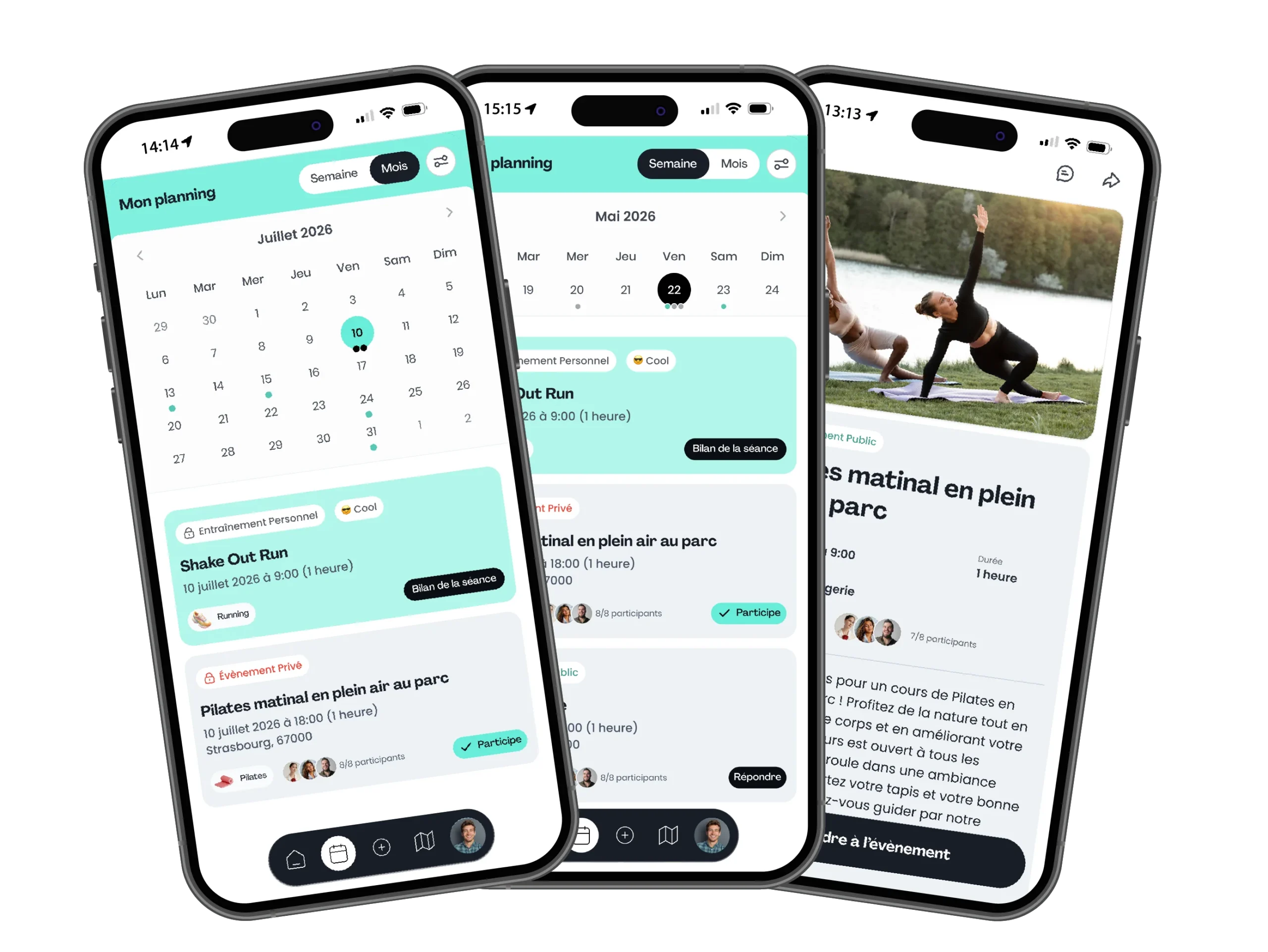 Que ce soit un run, une séance de yoga ou un match entre collègues, tout est possible. Pour plus de sécurité et de confiance, vous pouvez choisir que seuls les participants certifiés puissent rejoindre votre événement.